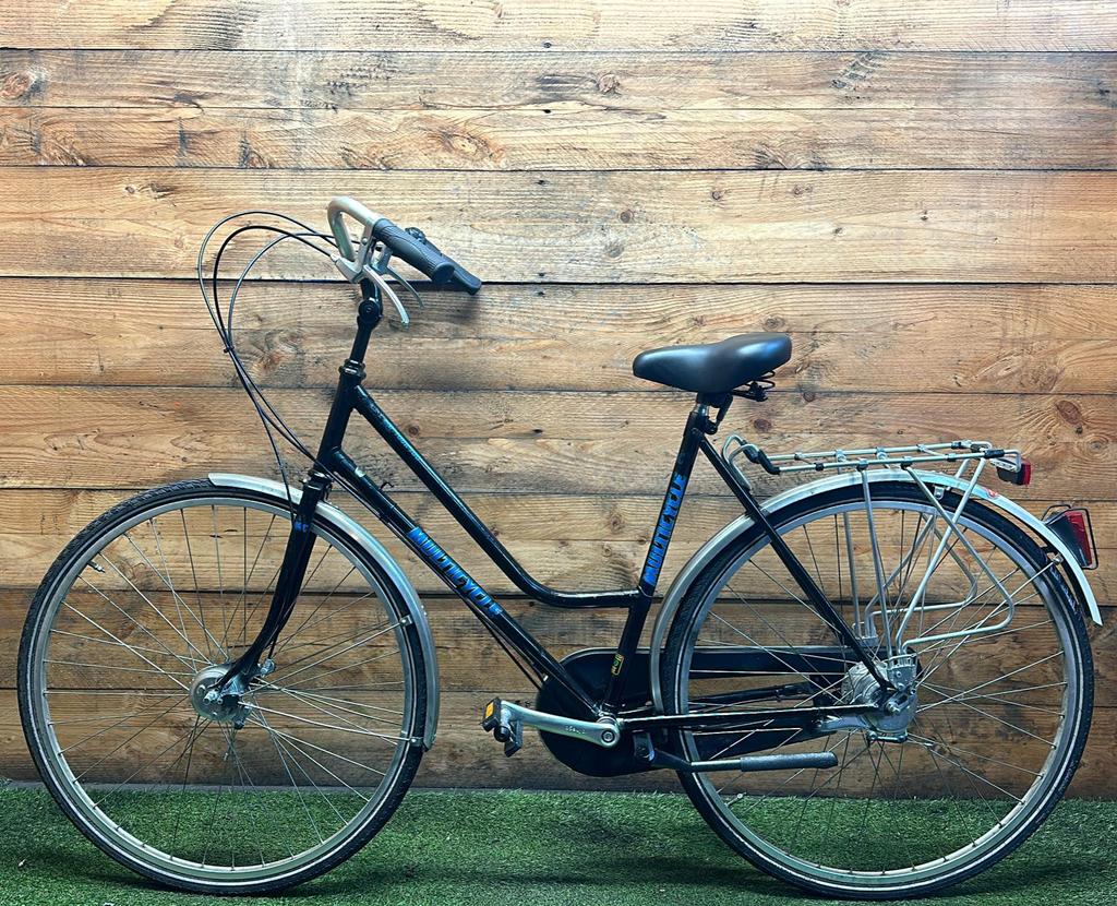 Hoewel de fiets gebruikssporen heeft, is deze technisch volledig gereviseerd en zijn versleten onderdelen vervangen door nieuwe
