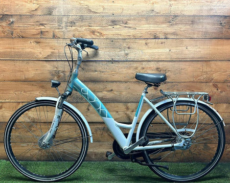 Hoewel de fiets gebruikssporen heeft, is deze technisch volledig gereviseerd en zijn versleten onderdelen vervangen door nieuwe