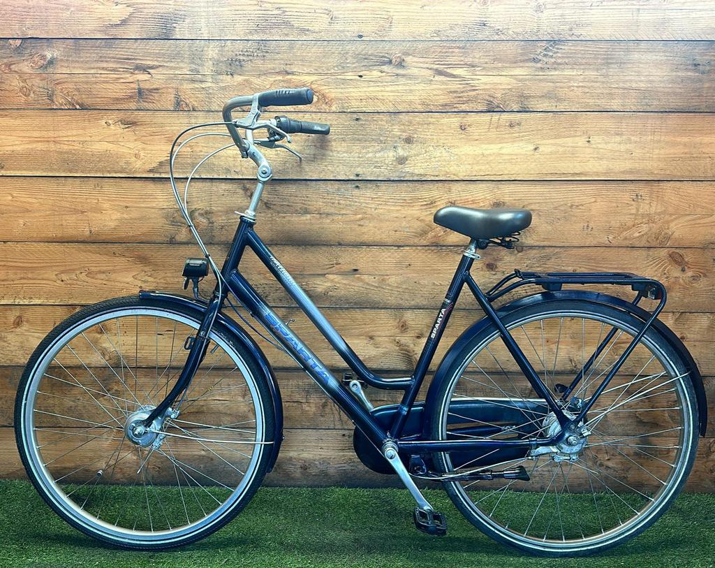 Hoewel de fiets gebruikssporen heeft, is deze technisch volledig gereviseerd en zijn versleten onderdelen vervangen door nieuwe