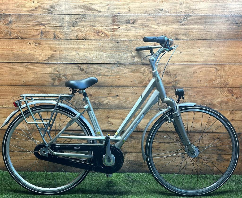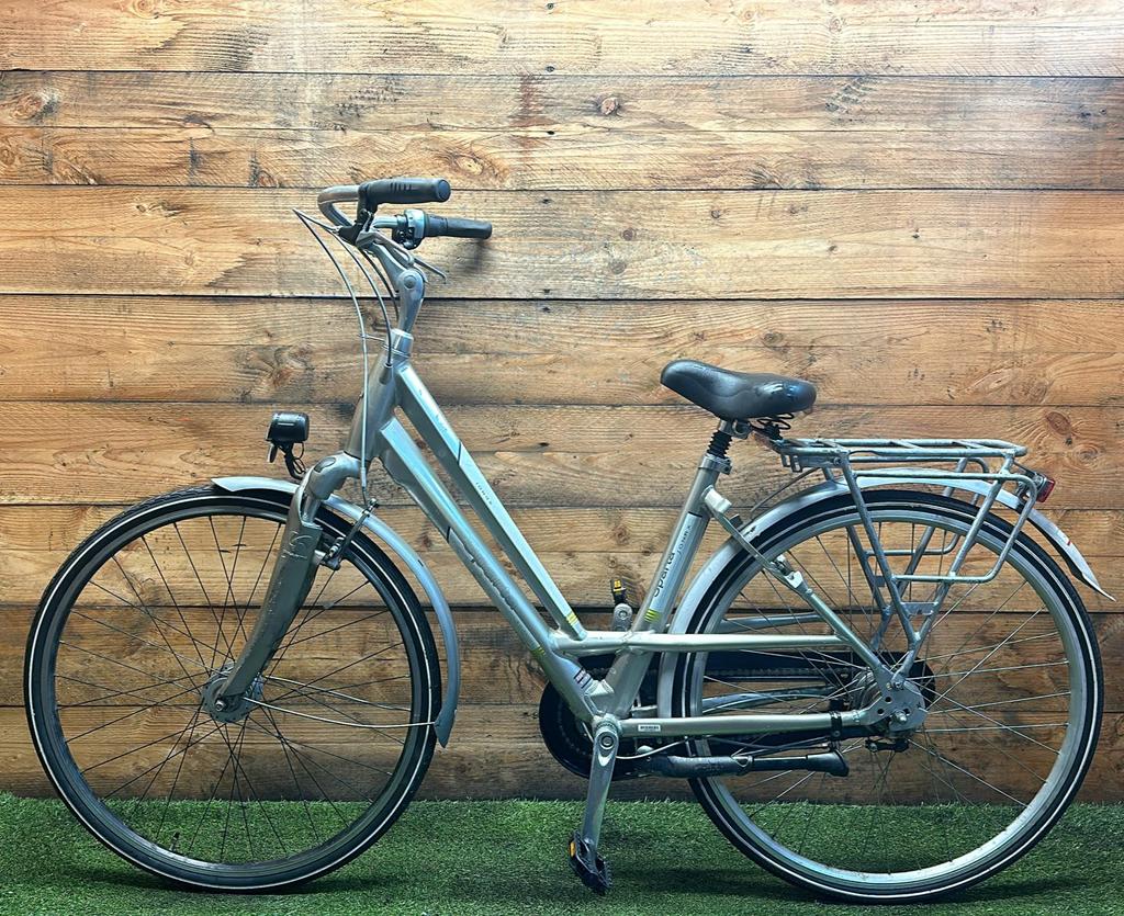 Hoewel de fiets gebruikssporen heeft, is deze technisch volledig gereviseerd en zijn versleten onderdelen vervangen door nieuwe