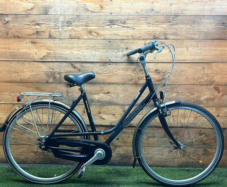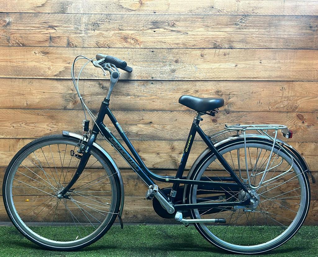 Hoewel de fiets gebruikssporen heeft, is deze technisch volledig gereviseerd en zijn versleten onderdelen vervangen door nieuwe