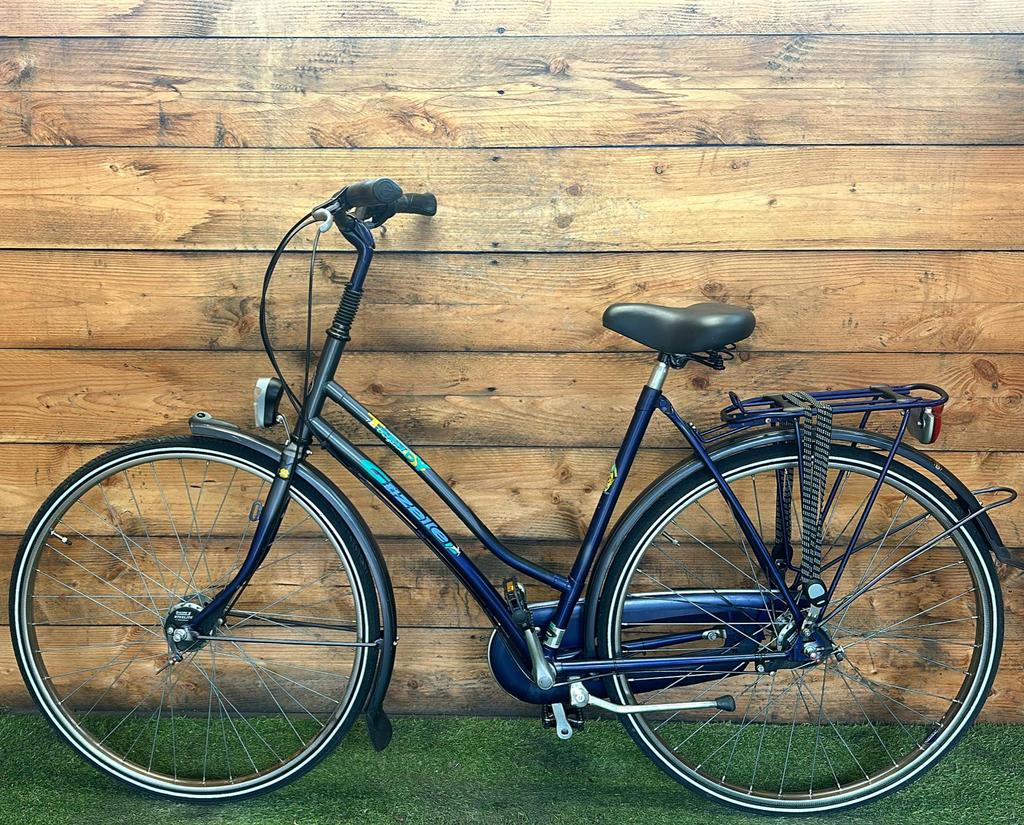 Hoewel de fiets gebruikssporen heeft, is deze technisch volledig gereviseerd en zijn versleten onderdelen vervangen door nieuwe